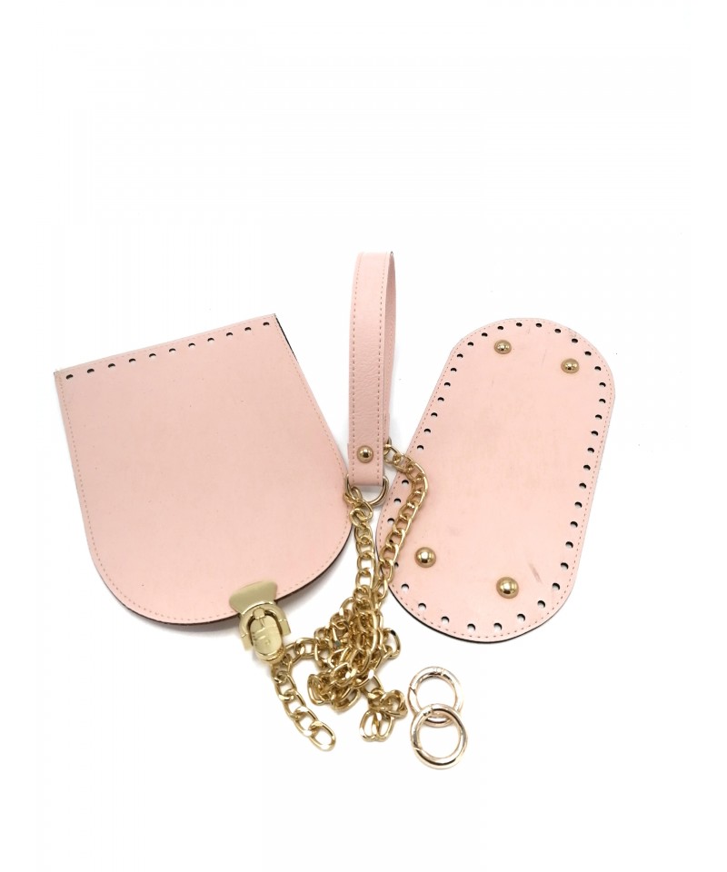 ÜÇLÜ ÇANTA SETİ (TABAN KAPAK ZİNCİRLİ SAP) PUDRA PEMBE