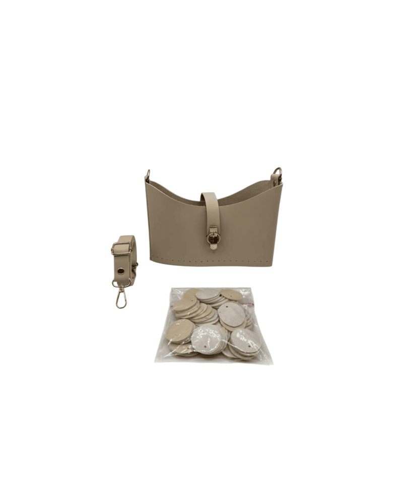 DERİ PULLU ÇANTA SETİ BEJ